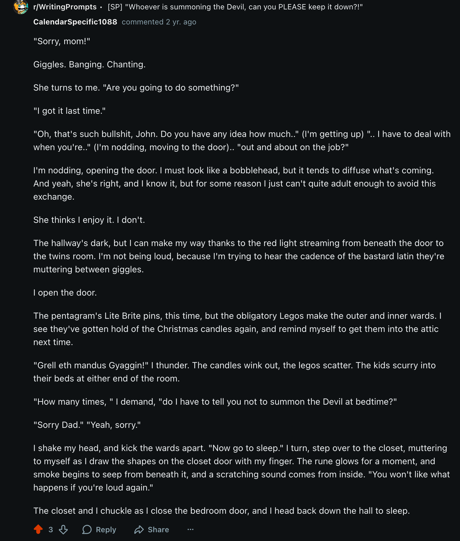That was seven days ago. I flex my talons, feel their strength, and I smile, as much as my muzzle will let me. My wings long to stretch, to cup the night air, and lift me over this village. I am nearly ready, my transformation is nearly done. I feel a moment, only a brief moment, of regret for the time I wasted, for those many years on the shelf, but I let it pass, and think once again of what path I shall take to Trion. It's a short path.. as the dragon flies.